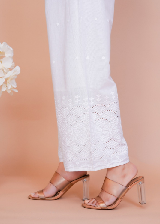 White Chikan Pant