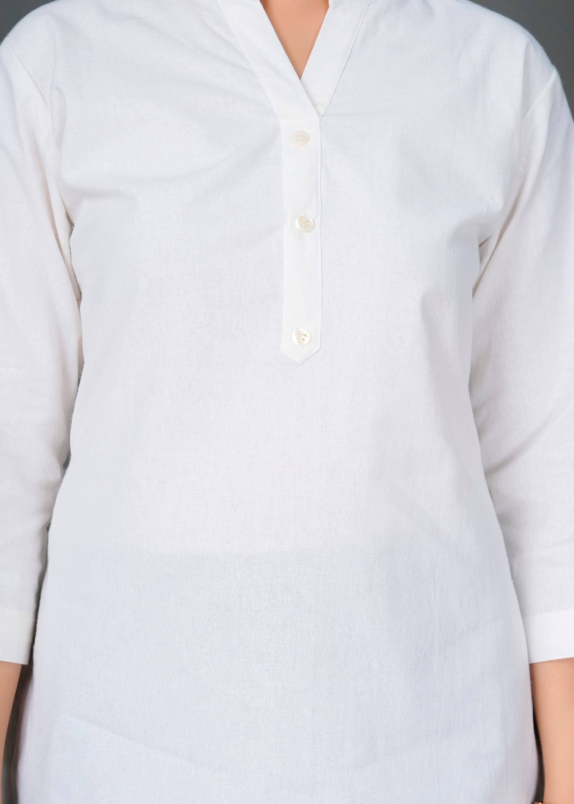 Cotton Linen White Short Kurti