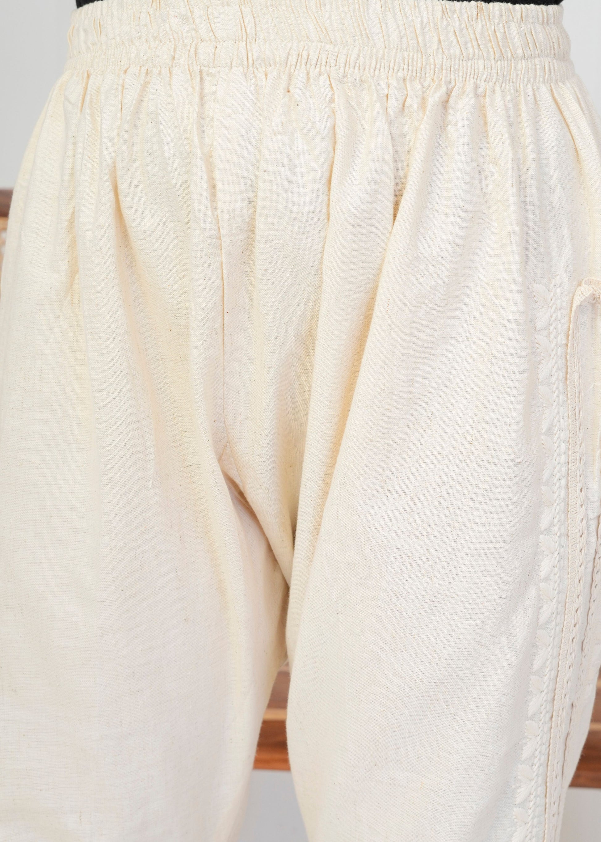 Add subtle elegance to your everyday wardrobe with these elegant cream embroidered pants, designed for comfort and graceful styling. The soft cream shade paired with delicate embroidery creates a refined look that’s easy to dress up or down.